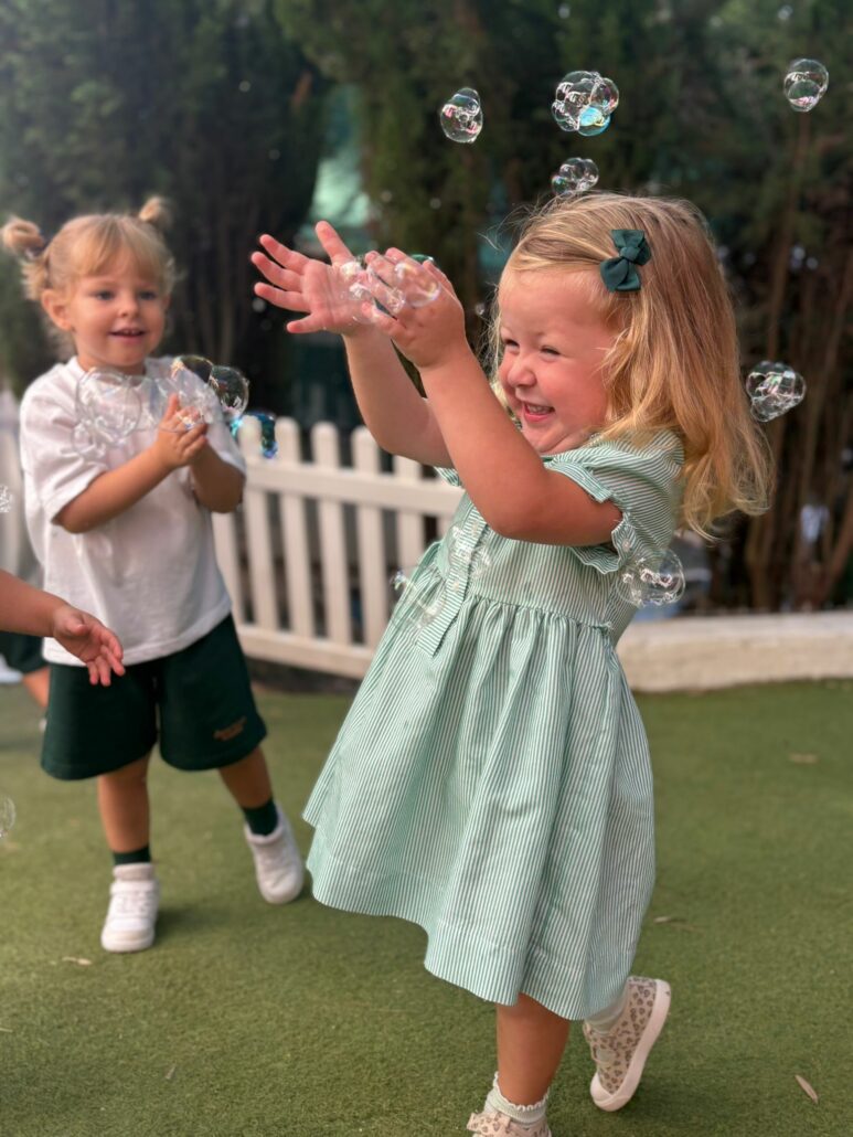 Nuestro hermoso jardín cerrado es un oasis espacioso y seguro donde los niños pueden correr, jugar y explorar rodeados de naturaleza; incluye un huerto, un aula al aire libre y un arenero.